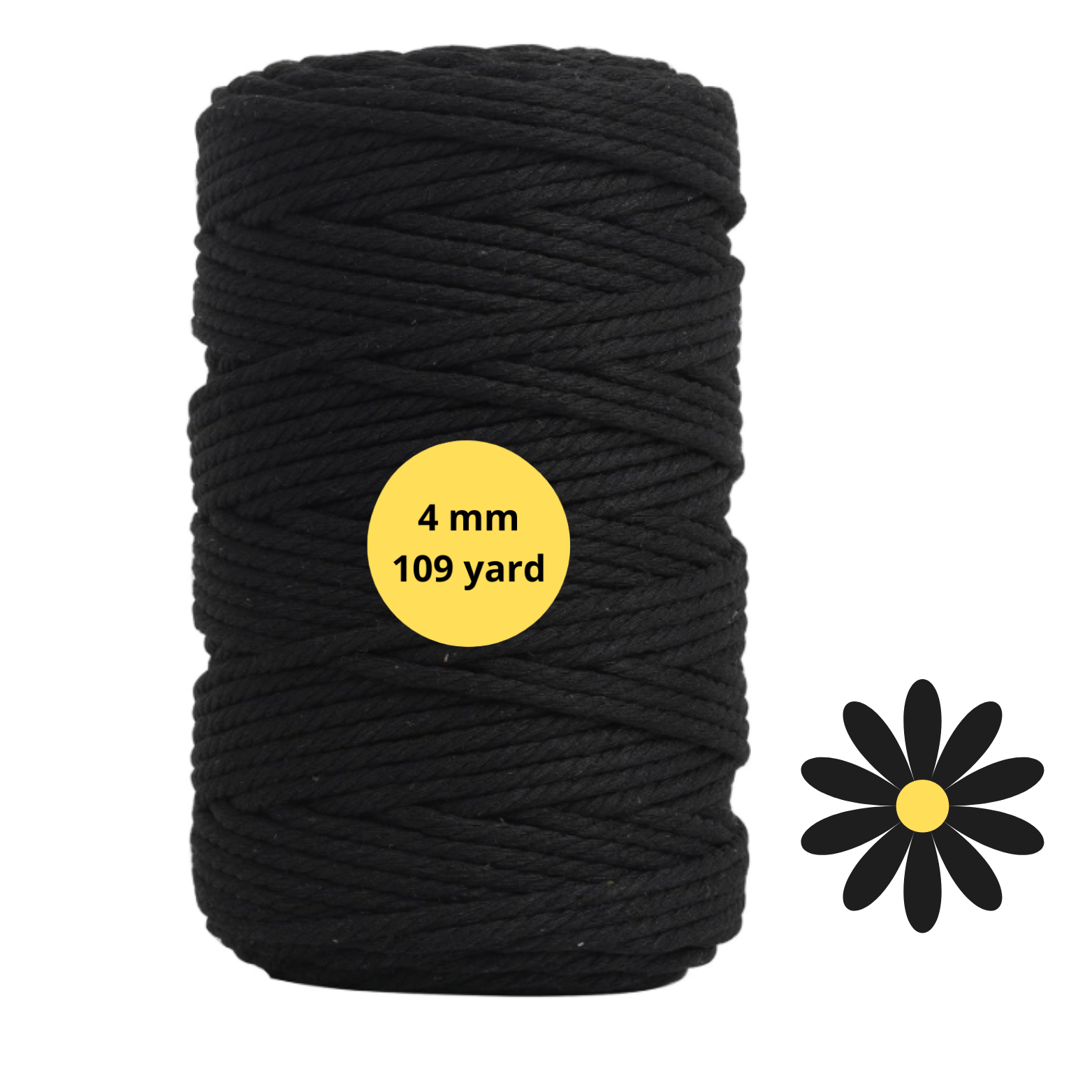 Natural Color Macrame Cord 4 mm x 109yards, Colored Macrame Rope, 4 Strand Twisted Cotton Rope Macrame Yarn, Colorful Cotton Craft Cord for Wall Hanging, Plant Hangers, Crafts, Knitting